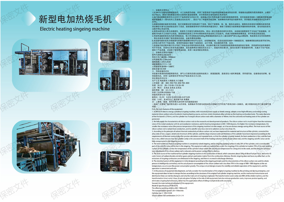 This equipment is compared with the conventional fuel cylinder singeing machine, gas burner singeing machine with less energy consumption, high surface temperature, small temperature difference singular grade, no environmental pollution, good equipment stability and so on. More conventional singeing machine, the same variety of singeing can save production costs as much as three-fifths.